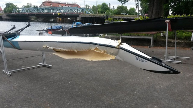 Dabei begann die letzte Trainingswoche alles andere als optimal, weil wir beim Training im Teltowkanal  von einem Rennachter von Wiking „übersehen“ wurden und frontal zusammen stießen.  Da waren wir allerdings nur der „zweite Sieger“.