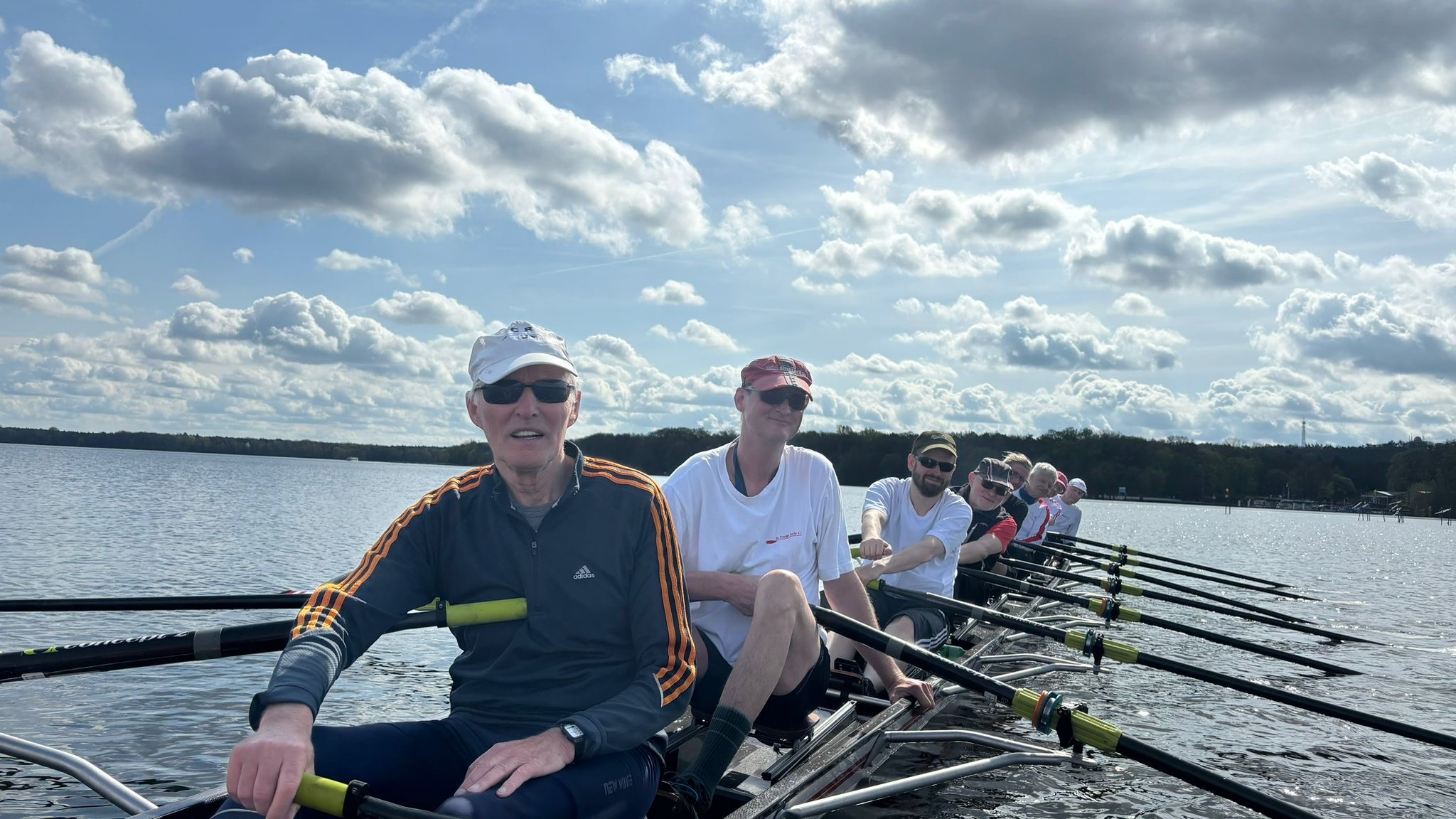 Und dann ging es schon aufs Wasser. Nach kurzem, aber schnell behobenem Missverständnis durfte ich mit Mario auch noch im Achter hinter unserer Trainer- und Masterlegende Laaki Platz nehmen. Mir wurde an diesem Tag mal wieder bewusst, welche Ruderlegenden in unserem Verein aktiv sind, die als Vorbild für junge Sportler sehr geeignet sind!