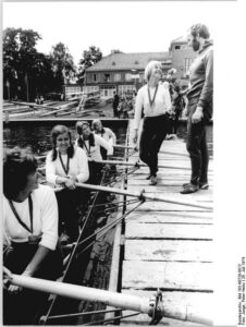 Aufgrund dieses Erfolges mussten sie auch in die Nationalmannschaft der Juniorinnen integriert werden und an einem Länderkampf der sozialistischen Länder teilnehmen. Das durfte sich einfach nicht wiederholen, weil die Trainingsbedingungen bei den Clubs optimiert wurden, um Höchstleistungen zu erzielen. Dann „mussten“ die auch die Besten im Land sein. Soweit die Theorie... Deshalb wurden die 4 Mädels zum SC Berlin Grünau delegiert. Auch Laaki hatte das Angebot, als Trainer dort weiter arbeiten zu können, hat es damals aber abgelehnt. Beim SCBG trainierten die 4 jungen Frauen beim Erfolgstrainer Udo Hill, der Petra und Viola 1976 zu Olympia in Montreal geführt hat. Petra hat im Doppelzweier Silber, Viola im Doppelvierer mit Steuerfrau Gold gewonnen. 1977 gewannen beide zusammen in Amsterdam bei der WM Gold im D4m. Was für eine tolle Geschichte, wer mehr davon erfahren möchte, Viola und Laaki sind regelmäßig im Verein...