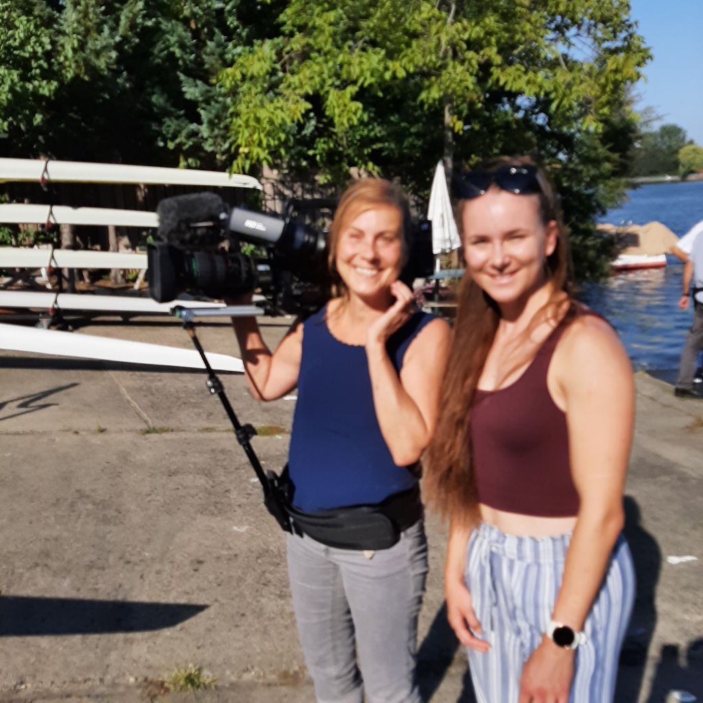 Eine Redakteurin, eine Kamerafrau und ein Techniker haben sich dabei nicht nur für das Training im Boot, sondern auch für die harte Arbeit im Kraftraum und auf dem Ergometer interessiert. So wurden aus drei wichtigen Trainingsbereichen Aufnahmen gemacht: