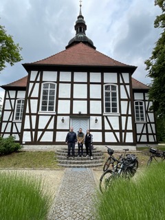 Am Sonntag, den 9. Juni, unternahm ich mit zwei weiteren Mitgliedern der Anfängertrainingsgruppe und in Begleitung unseres Übungsleiters Dieter eine schöne Radtour von Königs Wusterhausen in den Spreewald nach Lübben. Die Route führte uns über den historischen Hofjagdweg, vorbei an Groß Köris, Märkisch Buchholz, Köthen und Krausnick.Bei gutem Fahrradwetter starteten wir gegen 9 Uhr in Königs Wusterhausen. Nach etwa 30 Kilometern legten wir unsere erste Pause am Treppenwehr in Märkisch Buchholz ein – ein idealer Ort, um kurz durchzuatmen. Weiter ging es durch abwechslungsreiche Landschaften und schattige Waldabschnitte auf den Aussichtsturm Wehlaberg.