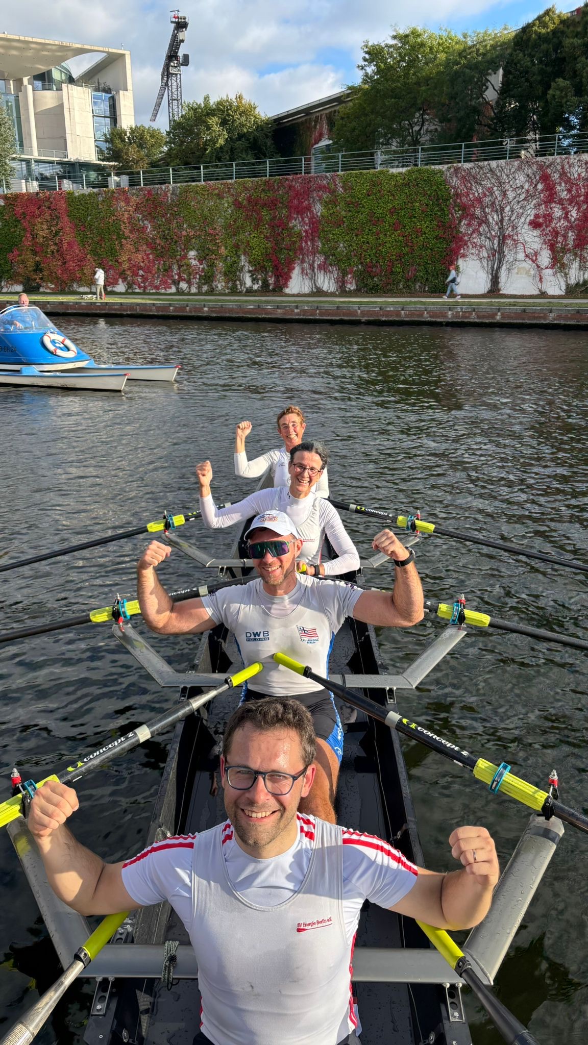 Auch bei der 96. Auflage der beliebten Langstrecken-Regatta auf der Spree quer durch die Stadt Berlin wollten unsere Energie-Masters Sabine, Valentin und Martin gern wieder mit Annett Bühnert vom Rüdersdorfer RV und Steuermann Julian Engelmann vom Richtershorner RV im Mixed 4x+ siegreich sein.
