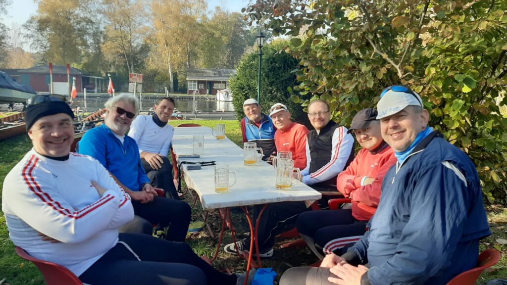 Und wieder war es zum Gesamtberliner Abrudern spätsommerlich warm, sodass wie vor zwei Jahren auch gut in “kurz” gekleidet nach Schmöckwitz zum Veranstalter-Verein FSV gerudert werden konnte. Einige Boote sind die Umfahrt mit Halt bei Luftfahrt gefahren.