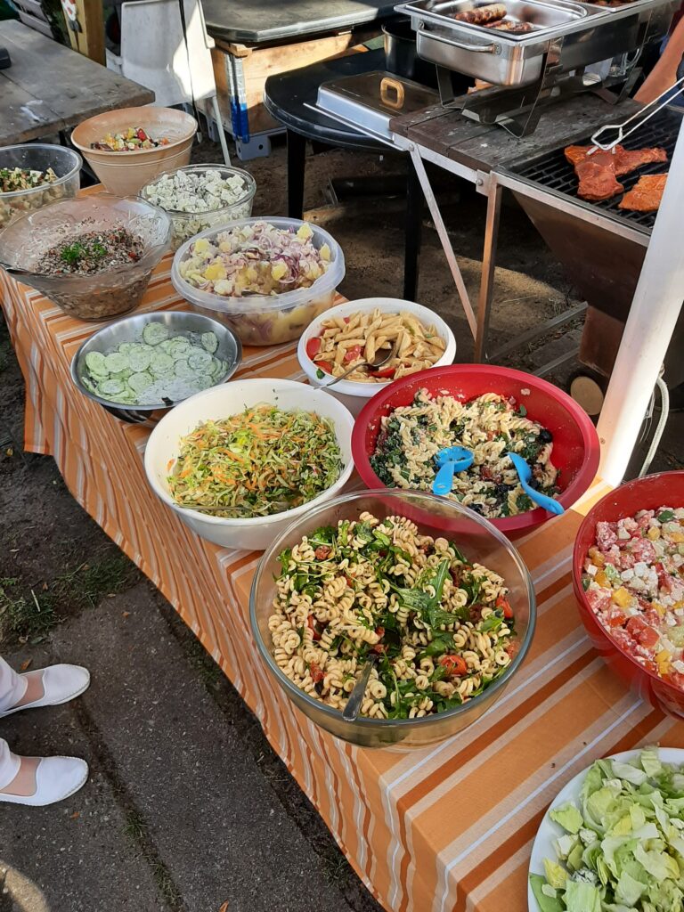 Noch bevor es richtig los ging kam zwar noch Regen aus dicken Wolken, dass konnte ab er die Vorfreude bei den Vorbereitungen und die Entscheidung, alles auf dem Außengelände durchzuführen, nicht beeinflussen. Und danach war Petrus doch sehr gnädig zu unserer Party.