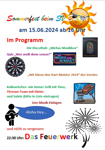 Unser diesjähriges Sommerfest fand wieder zum gewohnten Termin am 15.6.2024 ab 17:30 Uhr parallel zum Stadtfest “Köpenicker Sommer” statt.